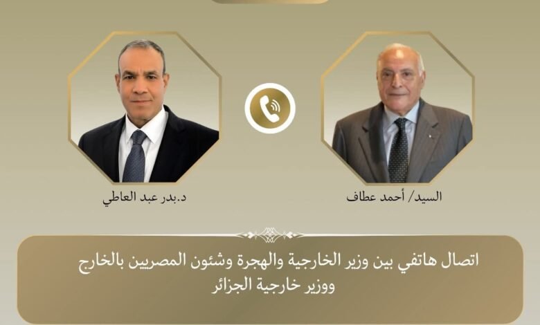 جرى اتصال هاتفي يوم السبت ١٦ أغسطس ٢٠٢٥، بين د. بدر عبد العاطي وزير الخارجية والهجرة وشئون المصريين بالخارج أحمد عطاف وزير الشئون الخارجية والجالية الوطنية بالخارج في الجمهورية الجزائرية الديمقراطية الشعبية الشقيقة، وذلك في إطار التشاور الدوري والتنسيق المستمر بين البلدين الشقيقين.