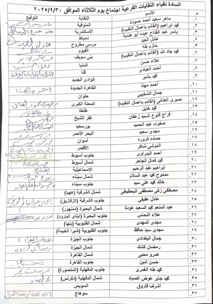 بسم الله الرحمن الرحيم بيان صادر عن الاجتماع المشترك بين مجلس النقابة العامة للمحامين والنقباء الفرعيين برئاسة النقيب العام رئيس اتحاد المحامين العرب المنعقد يوم الثلاثاء الموافق 30/9/2025 فى اطار الجهود المبذولة من النقابة العامة للمحامين من أجل حل ودراسة كافة المشكلات العملية التى تتعلق بكافة النواحي المهنية والصحية ، فقد دعى النقيب العام عبد الحليم علام، إلى اجتماع مشترك لمجلس النقابة العامة والنقباء الفرعيين على مستوى الجمهورية لبحث وتدارس هذه الأمور ،حيث انتهى الاجتماع إلى طرح المشاكل الجوهرية للدراسة من قبل اللجان المختصة بالنقابة العامة والنقابات الفرعية وتم إيداع التقارير الشاملة في هذا الأمر وذلك على النحو الآتي:
