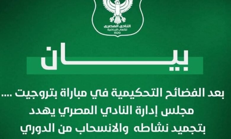 المصري يهدد بالانسحاب من الدوري بعد الخسارة من بتروجيت بسبب أخطاء التحكيم