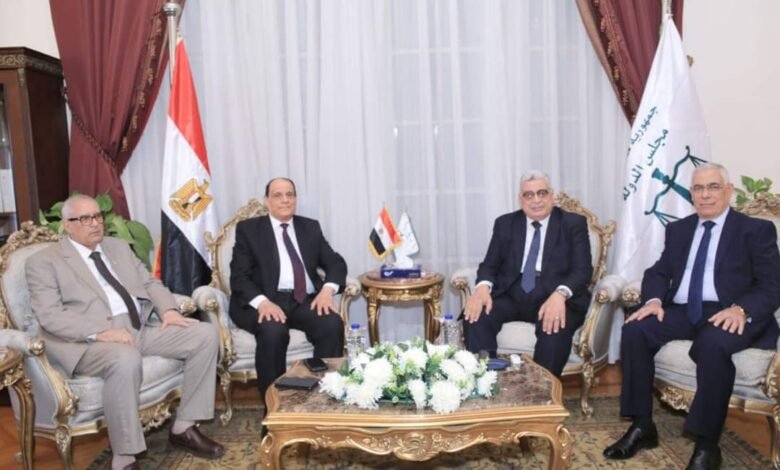 النائب العام ورئيس مجلس القضاء الأعلى ورئيس محكمة استئناف القاهرة يجرون زيارة إلى رئيس مجلس الدولة