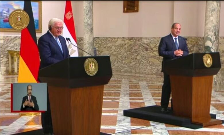 وذكر السفير أحمد فهمي المتحدث الرسمي لرئاسة الجمهورية أن الرئيسين عقدا جلسة مباحثات مغلقة أعقبتها جلسة موسعة بحضور الوفدين الرسميين، حيث أعرب الرئيس عن ترحيبه بزيارة الرئيس “شتاينماير” الأولى لمصر كرئيس لألمانيا، والأولى لرئيس ألماني منذ ٢٥ عاماً، مؤكداً تقدير الشعب المصري للصداقة الوثيقة مع الشعب الألماني، وما حققته ألمانيا من تقدم صناعي وتكنولوجي، تتطلع مصر لتعظيم الاستفادة منه، من خلال المشروعات المشتركة بين الجانبين، والدور المهم الذي تضطلع به الشركات الألمانية في نقل التكنولوجيا وبناء القدرات للكوادر المصرية.