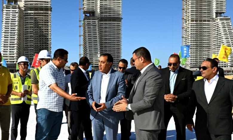 رئيس الوزراء يتفقد أعمال مشروعات “أبراج الداون تاون” و”داون تاون لاجون” بمدينة العلمين الجديدة
