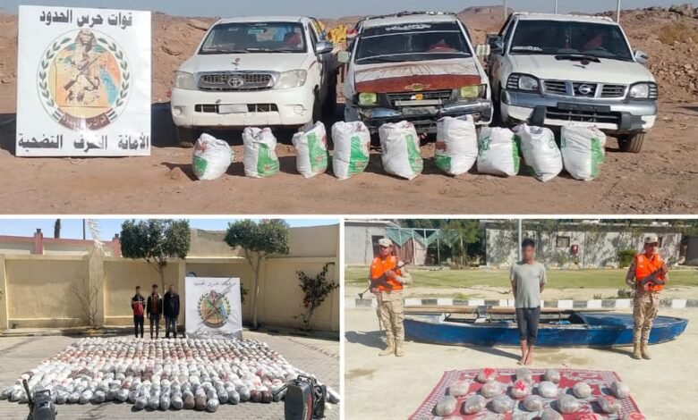 حيث نجحت قوات حرس الحدود فى إحباط العديد من محاولات تهريب الأسلحة والذخائر والمواد المخدرة من ( الحشيش – الهيدرو – البانجو – الأفيون – الأقراص المخدرة ) ، وضبط كميات كبيرة من البضائع غير خالصة الرسوم الجمركية .