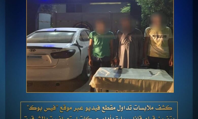 كشف ملابسات ما تم تداوله عبر موقع التواصل الإجتماعى “فيس بوك” بشأن مقطع فيديو تضمن قيام قائد سيارة بأداء حركات إستعراضية، وقيام المرافقين له بالخروج من نوافذ السيارة وحملهم أسلحة بيضاء.. بطريق ههيا الدائرى بمحافظة الشرقية.. مما يعرض حياة المواطنين وحياتهم للخطر.