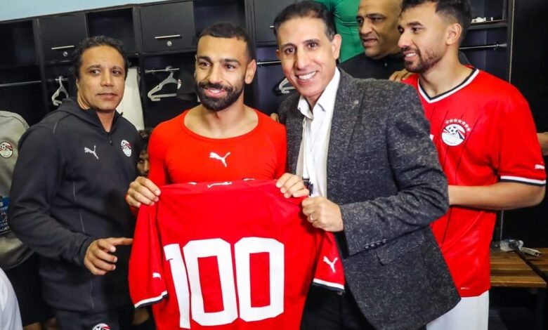 منتخب مصر يحتفل بوصول محمد صلاح للمباراة رقم 100