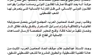 أدان رئيس اتحاد المحامين العرب، الأستاذ عبد الحليم علام، قرار حكومة الاحتلال الإسرائيلي بوقف دخول المساعدات الإنسانية إلى قطاع غزة،…