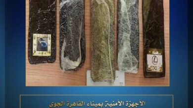الأجهزة الأمنية بميناء القاهرة الجوى تضبط أحد الأشخاص بكمية بمخدر الحشيش