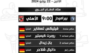 اتحاد الكرة المصري يعلن طاقم تحكيم مباراة بيراميدز أمام الأهلي يوم الاثنين في الدفاع الجوي من ألمانيا حكم ساحة :…
