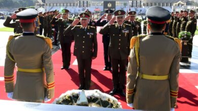 بمناسبة الإحتفال بيوم الشهيد رئيس الجمهورية ينيب الفريق أول عبدالمجيد صقر لوضع إكليل من الزهور على النصب التذكارى لشهداء القوات المسلحة