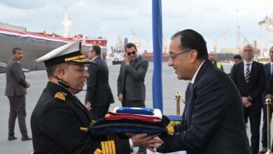 رئيس الوزراء يشهد رفع العلم المصري على السفينة “وادي العريش” بميناء دمياط