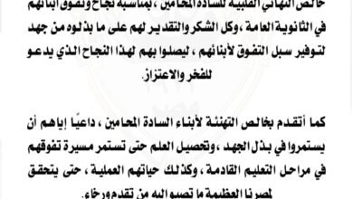 تقدم عبد الحليم علام، نقيب المحامين – رئيس اتحاد المحامين العرب، بالتهنئة إلى المحامين، بمناسبة نجاح أبنائهم في الثانوية العامة،…