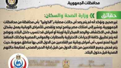 انتشر في بعض صفحات التواصل الاجتماعي أنباء حول ظهور حالات إصابة بوباء “الكوليرا” في عدد من محافظات الجمهورية، وقد قام…