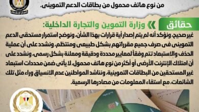وزارة التموين تنفي إصدار قرار بحذف أي مواطن يمتلك إنترنت أرضي أو أكثر من نوع هاتف محمول من بطاقات الدعم التمويني